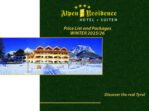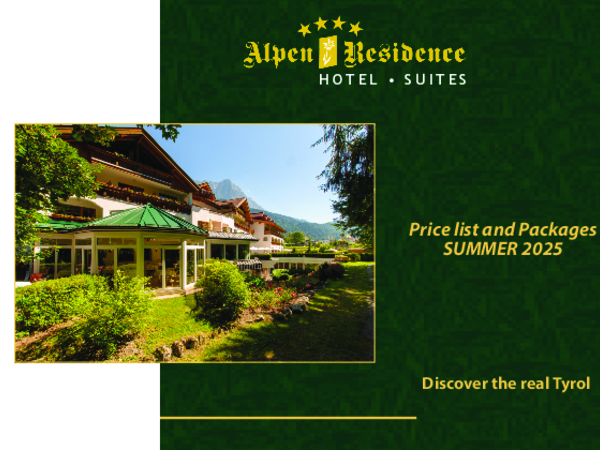 At the Alpen Residence we aim to help the environment by reducing our use of paper. And many of our guests join us in this effort by choosing to look through our brochure on line. Before printing think about your responsibility & commitment towards the Environment!